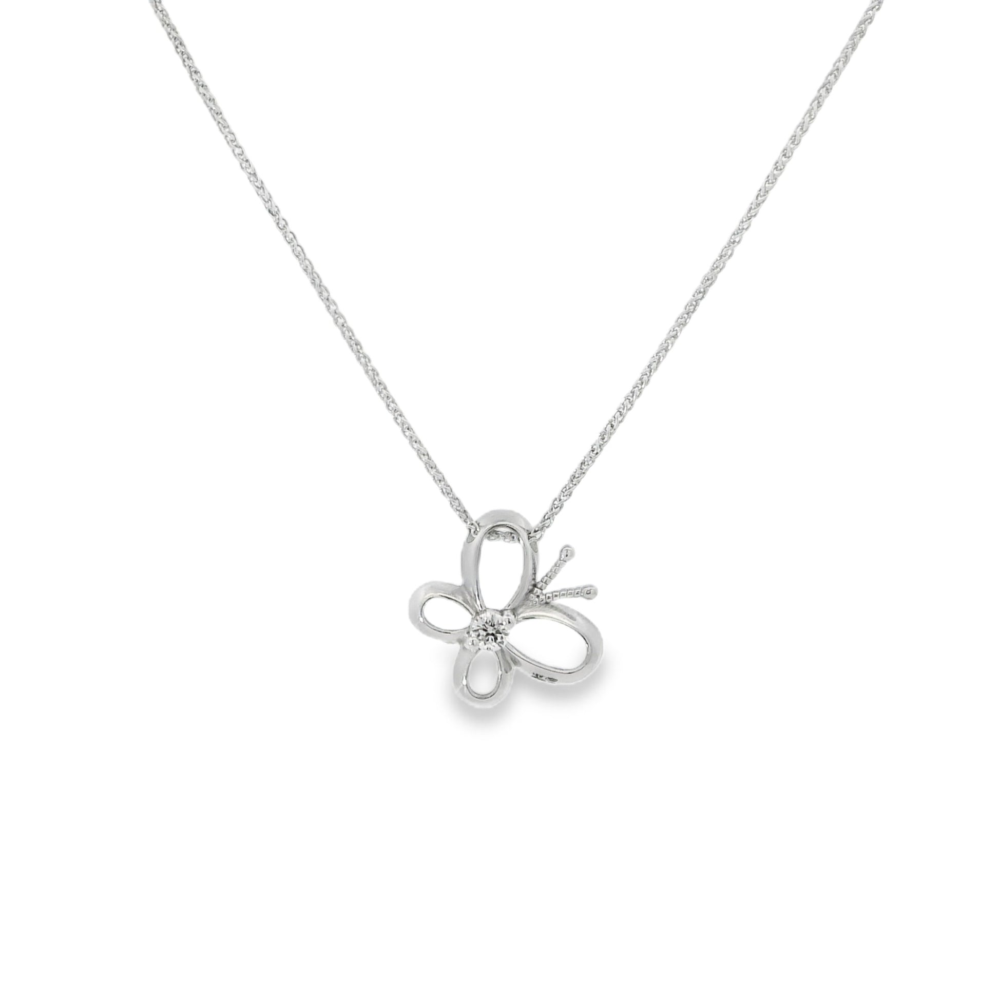 18ct White Gold Butterfly Diamonnd Pendant with Chain