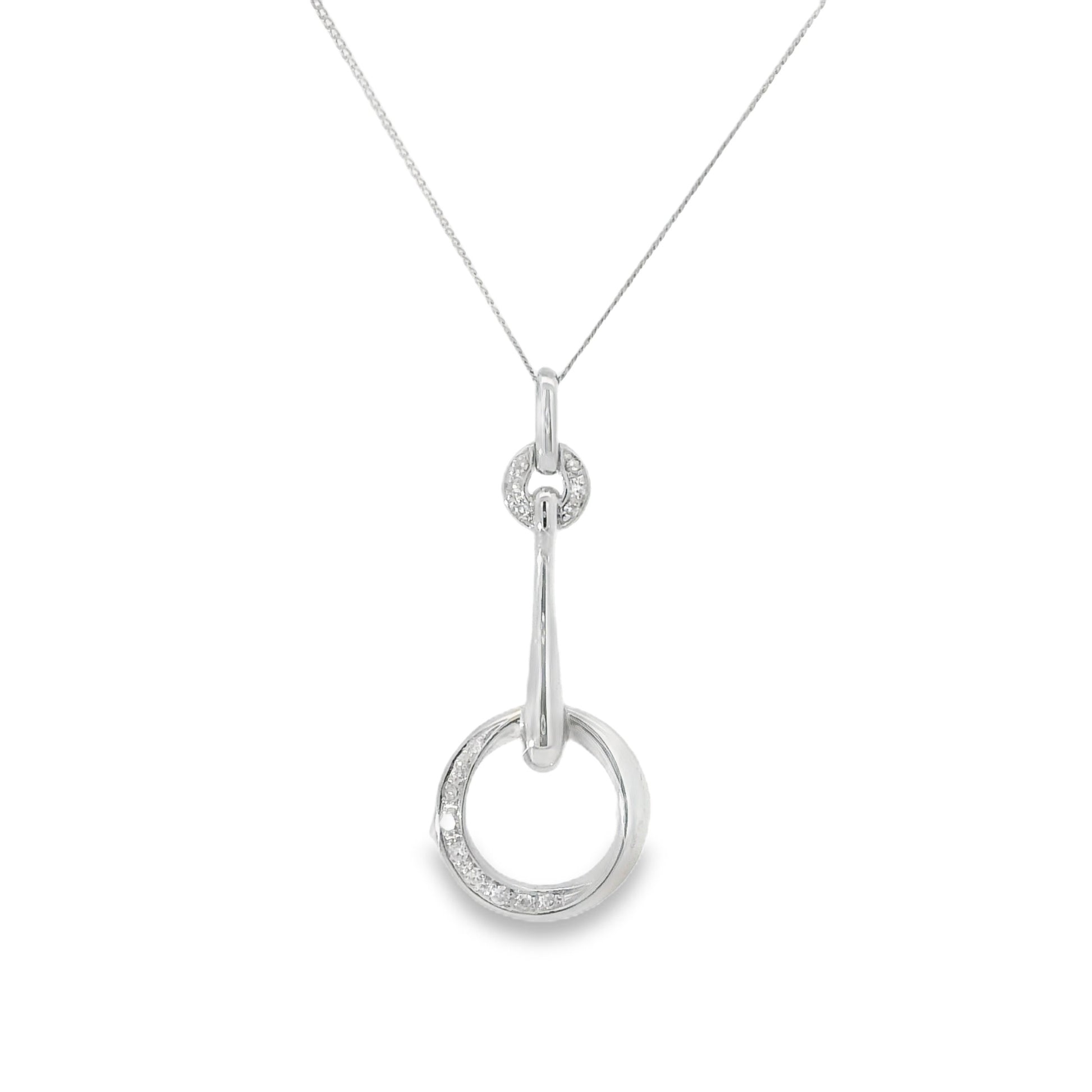 9ct White Gold Diamond Double Circle Drop Pendant with Chain