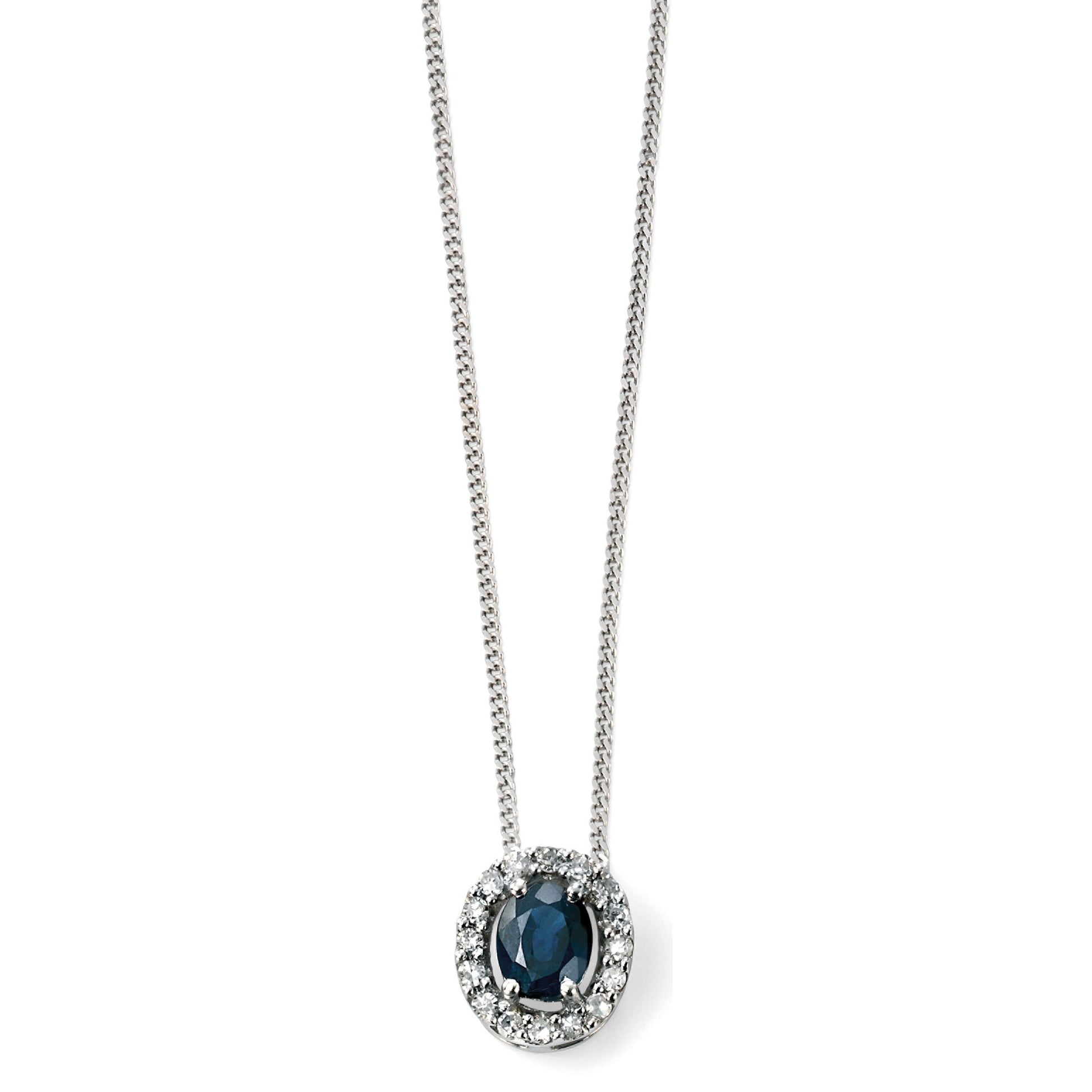 9ct White Gold Oval Blue Sapphire and Diamond Halo Pendant