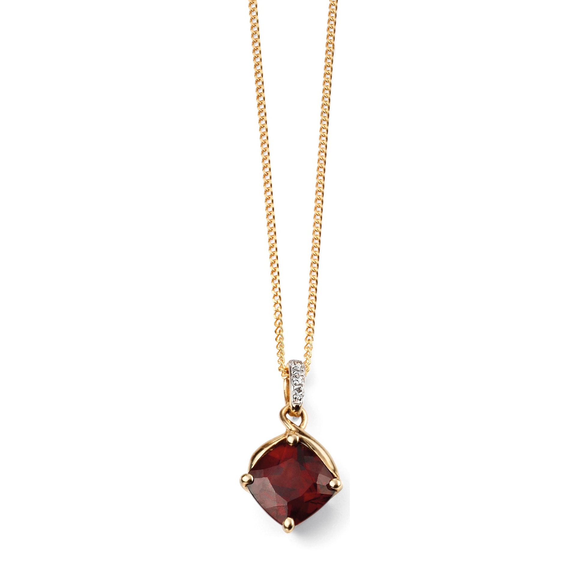 9ct Yellow gold diamond and cushion garnet articulated pendant