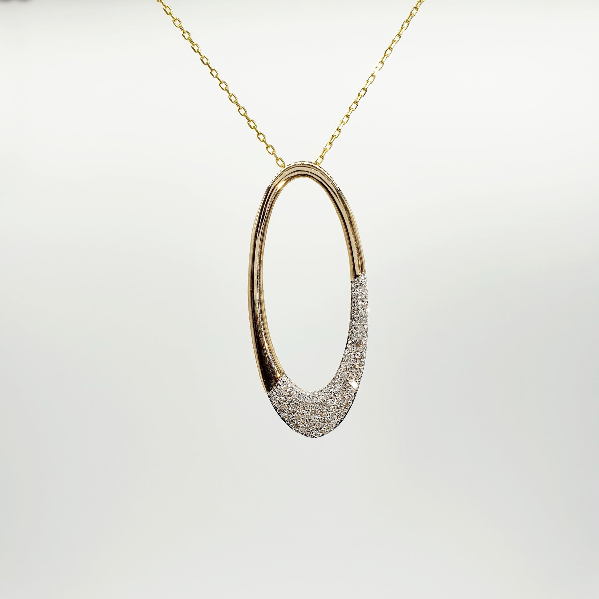 9ct Yellow Gold Diamond Pave set Oval Pendant