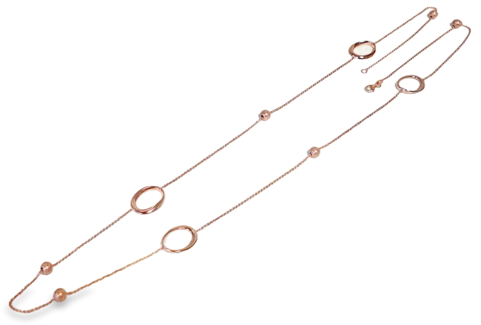 Elevate your style with this elegant sterling silver, rose gold plated chain necklace. The delicate design features uniformly spaced spherical accents and open circle motifs. Crafted from sterling silver, the chain exudes sophistication, perfect for adding a subtle touch of luxury to any ensemble.