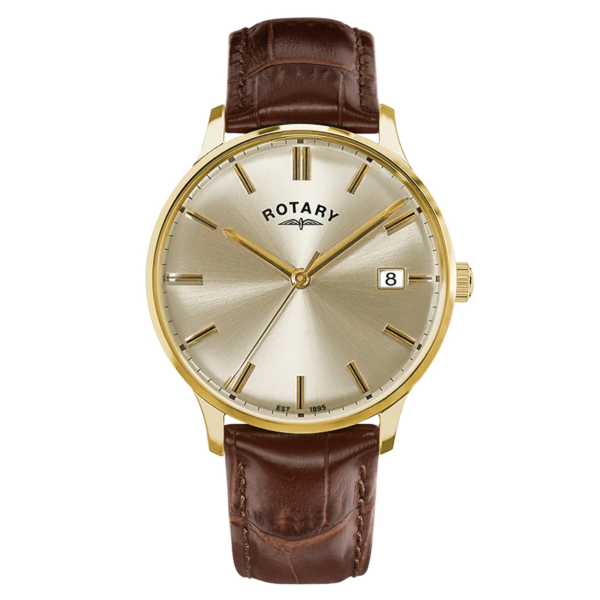 Gold Plated Champagne Dial Watch With Brown Leather Strap
